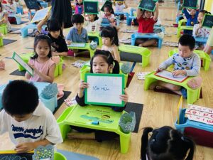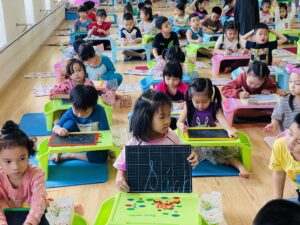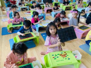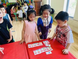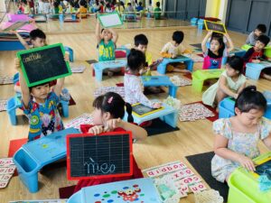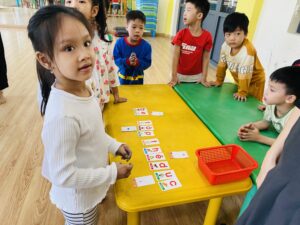 Hoạt động ” Chơi cùng chữ cái” của các bé lớp Hoa Anh Đào năm học 2024 – 2025