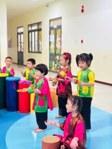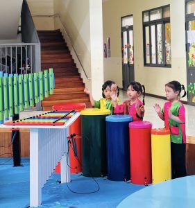 Với mong muốn mang đến cho các con những trải nghiệm học tập phong phú và đầy cảm xúc, trường đã trang bị dàn nhạc cụ ngoài trời – một không gian mở, nơi âm nhạc trở thành cầu nối của niềm vui, sự sáng tạo và cảm xúc trẻ thơ. Tại đây, các bé được tự do khám phá những âm thanh kỳ diệu từ dàn nhạc cụ ngoài trời Không chỉ là hoạt động vui chơi, mà còn là một hình thức giáo dục âm nhạc trải nghiệm, giúp trẻ phát triển khả năng cảm thụ, kỹ năng phối hợp, tinh thần đồng đội và sự tự tin khi thể hiện bản thân. Mỗi tiếng cười, mỗi nhịp gõ đều mang theo niềm hứng khởi và tình yêu âm nhạc trong trẻ. Bởi tất cả những điều chúng ta làm – đều vì các con thân yêu! Mời quý phụ huynh cùng nhìn lại những khoảnh khắc đáng yêu trong hoạt động trải nghiệm âm nhạc với dàn nhạc cụ ngoài trời của các bé nhé!